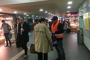 ETF-Aktionstag in den nordrheinwestfälischen Bahnhöfen Hamm, Dortmund, Essen und Köln