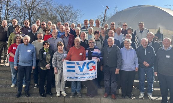 Martin Benner aus der EVG-Fachabteilung Beamtenpolitik und Bildung hatte Informationen für die Ruhestandsbeamt:innen im Gepäck. Die Besoldungserhöhung für Beamt:innen durch die Übertragung des ÖD-Tarifergebnisses, und damit die Erhöhung der Versorgung ist aus einer Reihe von Gründen immer noch nicht auf den parlamentarischen Weg gebracht worden. Immerhin gab es bereits eine Abschlagszahlung und im Mai wird es eine weitere geben.