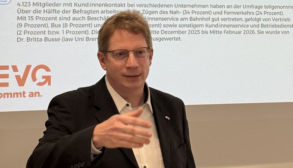 An der aktuellen Umfrage der EVG haben mehr als 4.000 Mitglieder teilgenommen, die im Kundenkontakt stehen. Die Beteiligung der Kolleginnen und Kollegen aus dem NE-Bereich war überproportional hoch. Durchgeführt wurde die Umfrage von Dr. Britta Busse, Mitglied des „Institut Arbeit und Wirtschaft“ (iaw) der Universität Bremen.