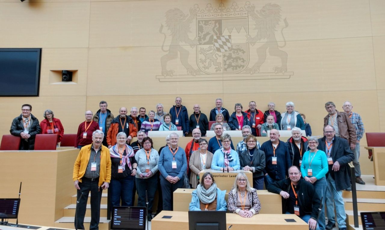 Früh morgens um 8 Uhr starteten 49 junge Seniorinnen und Senioren gut gelaunt und erwartungsvoll mit dem Reisebus von Nürnberg nach München. Auf Einladung des Bayerischen Landtags ging es direkt ins beeindruckende Maximilianeum.
