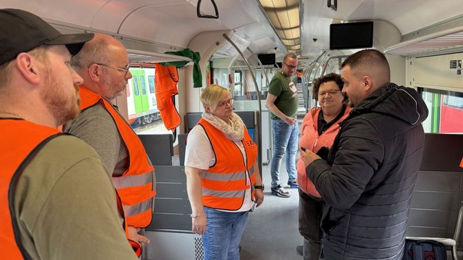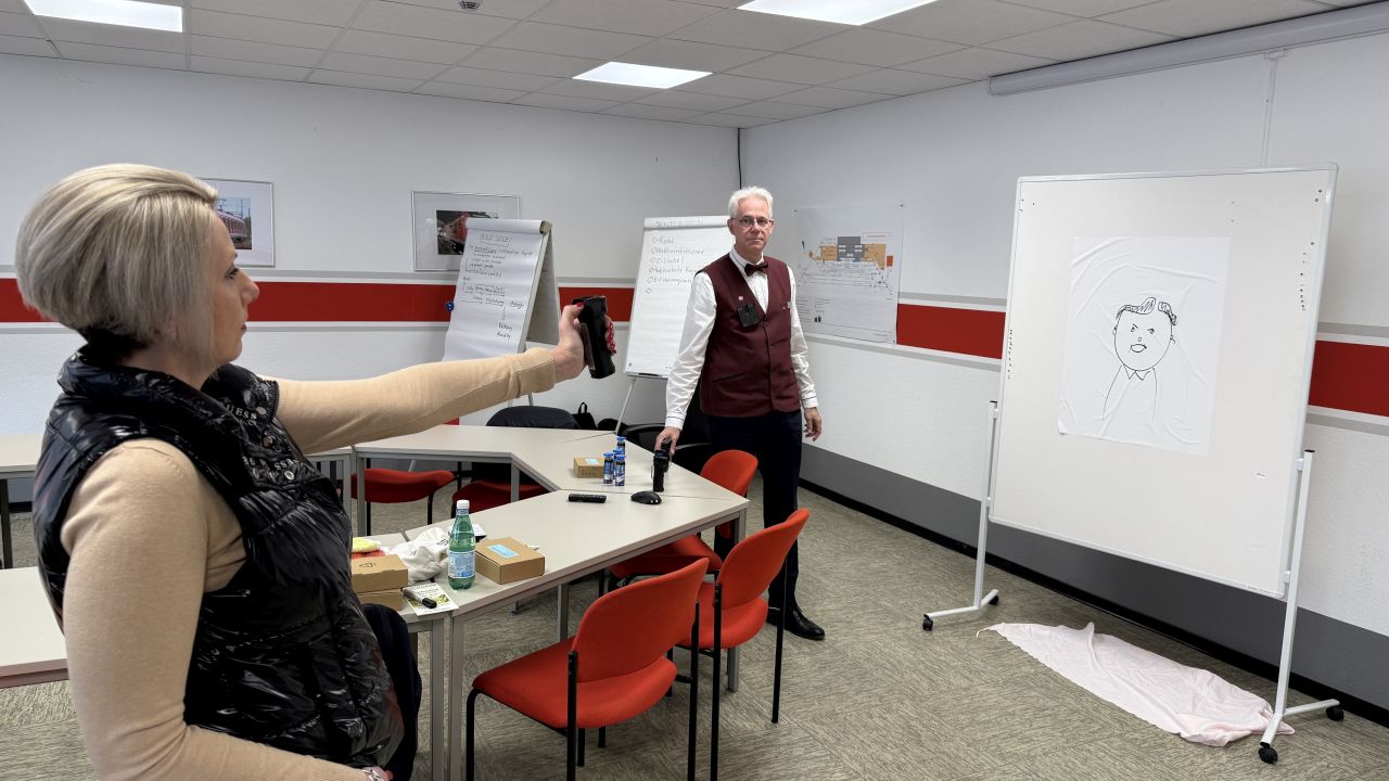 Das war das Schöne am Trainingstag der EVG: Kolleginnen und Kollegen aus dem Fernverkehr, dem Nahverkehr bei DB Regio und NE, aus dem Busbereich sowie der Werkstatt bei DB AG und NE tauschten sich intensiv aus und diskutierten unterschiedliche Lösungsansätze. Eine Kollegin aus dem Fernverkehr war beispielsweise erstaunt, dass zum Schutz der Beschäftigten im Nahverkehr BodyCams, Tierabwehrspray und der sogenannte Prioruf zum Einsatz kommen. Mit letzterem kann auf Knopfdruck Unterstützung in brenzligen Situationen angefordert werden. „Das alles haben wir im Fernverkehr nicht“, sagte sie – und konnte gleich informiert werden, dass sich der Gesamtbetriebsrat bereits mit diesen Themen beschäftigt. Auf Druck der EVG-Betriebsräte gebe es mittlerweile auch ein Pilotprojekt zum Einsatz der BodyCam im Fernverkehr.