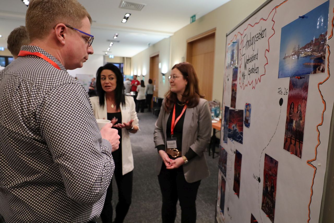 Zwei Gruppen - ein ähnlicher Gedanke – am Ende ein gemeinsames Projekt. Die Gruppe Kamfex (so benannt nach den Initialen der Mitglieder) befasste sich mit „Mitbestimmung in Zeiten der Veränderung“ und hier konkret mit der Frage „Was können wir tun, um unser Expert:innen-Wissen weiterzugeben?“ Das kreuzte sich bald mit den Wegen ener weiteren Projektgruppe, die eine „Erste-Hilfe-Toolbox“ für Betriebsräte entwickelte, um die laufenden Geschäfte eines BR-Gremiums mit den aktuellen Veränderungen im DB-Konzern zu vereinbaren. So entstand in Gemeinschaftsarbeit der „Betriebsratskompass“, der Handlungsempfehlungen zum Umgang mit personellen Maßnahmen zusammenstellt. Fazit der Teams: „Schon durch unsere Projektarbeit sind wir selbst handlungssicherer geworden. Und wir haben festgestellt, dass es gut und vorteilhaft ist, geschäftsfeldübergreifen zusammenzuarbeiten.“