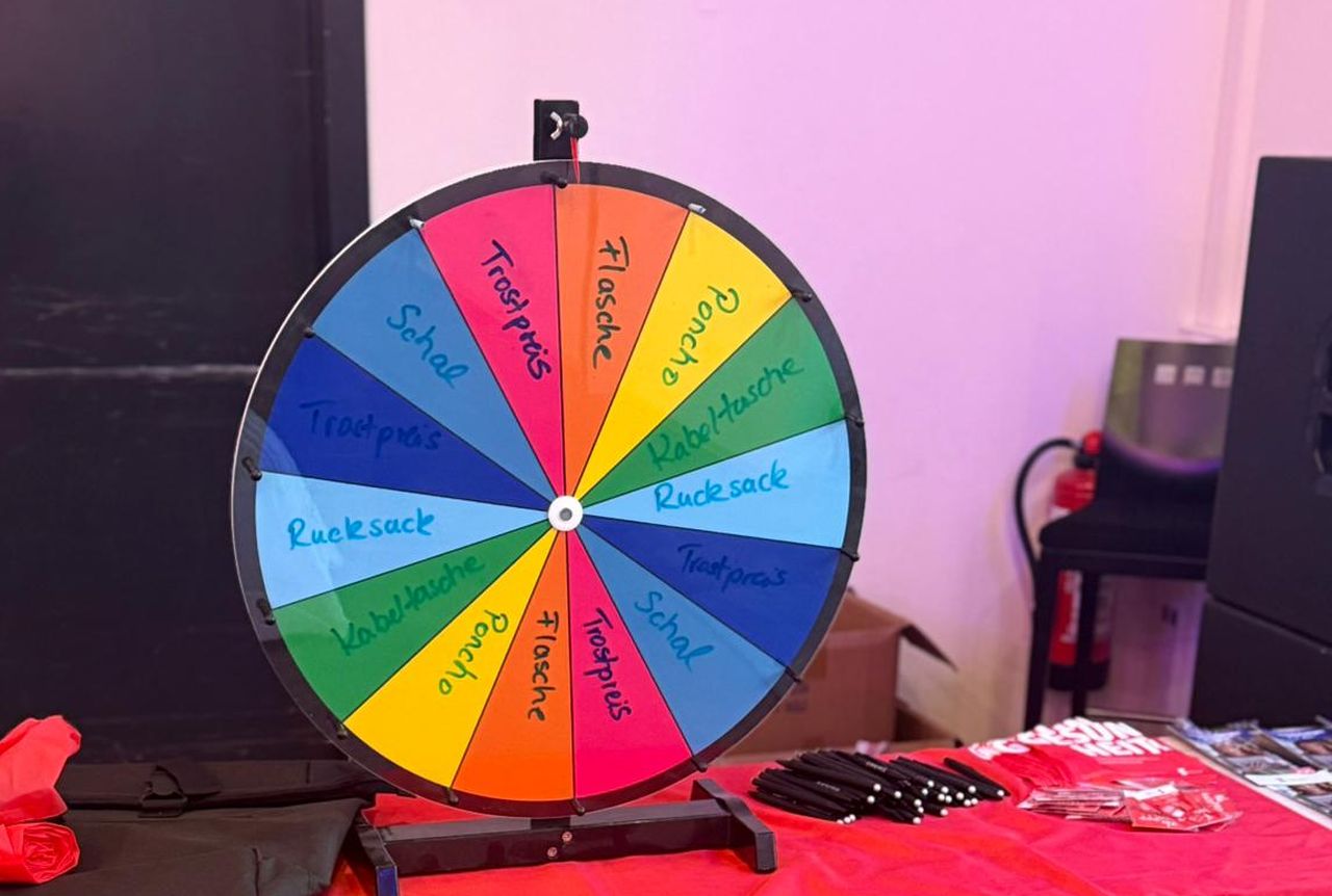 Ein weiteres Highlight des Abends war das Glücksrad, bei dem alle Teilnehmenden einen kleinen Preis erhielten. Die Aktion bot nicht nur Unterhaltung, sondern trug zusätzlich zu einer lockeren und fröhlichen Stimmung bei.