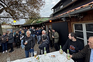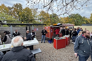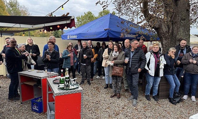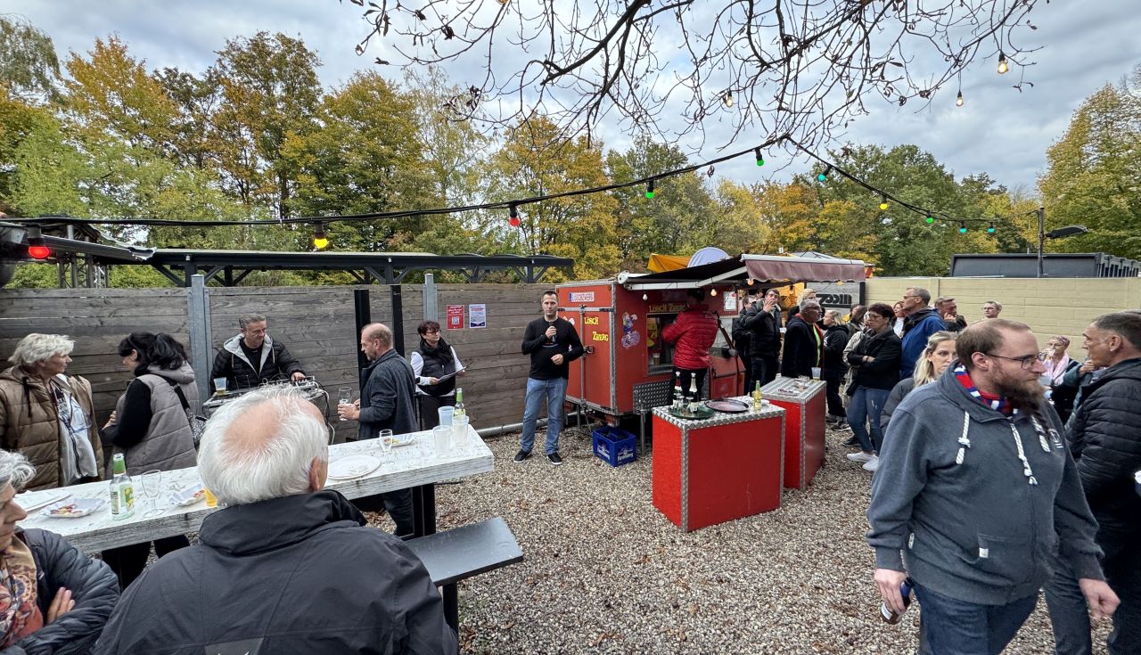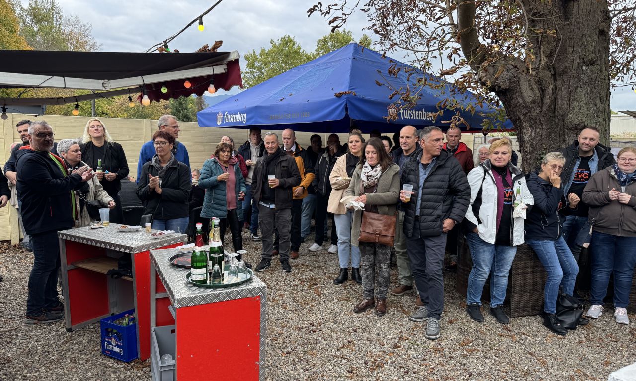 Bei angenehmer Atmosphäre kamen zahlreiche Kolleginnen und Kollegen zusammen, um dieses besondere Jubiläum gemeinsam zu begehen. Für das leibliche Wohl sorgte ein Flammkuchenwagen, in dem die Flammkuchen frisch im Holzofen zubereitet wurden. Ergänzt wurde das kulinarische Angebot durch eine reichhaltige Auswahl an Getränken und Snacks, sodass keine Wünsche offenblieben.