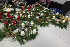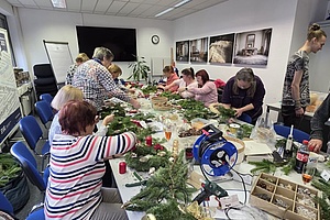 Mit Tannengrün bis unters Dach, funkelnden Deko-Elementen, warmem Tee und viel guter Laune wurde fleißig gestaltet und gewerkelt: