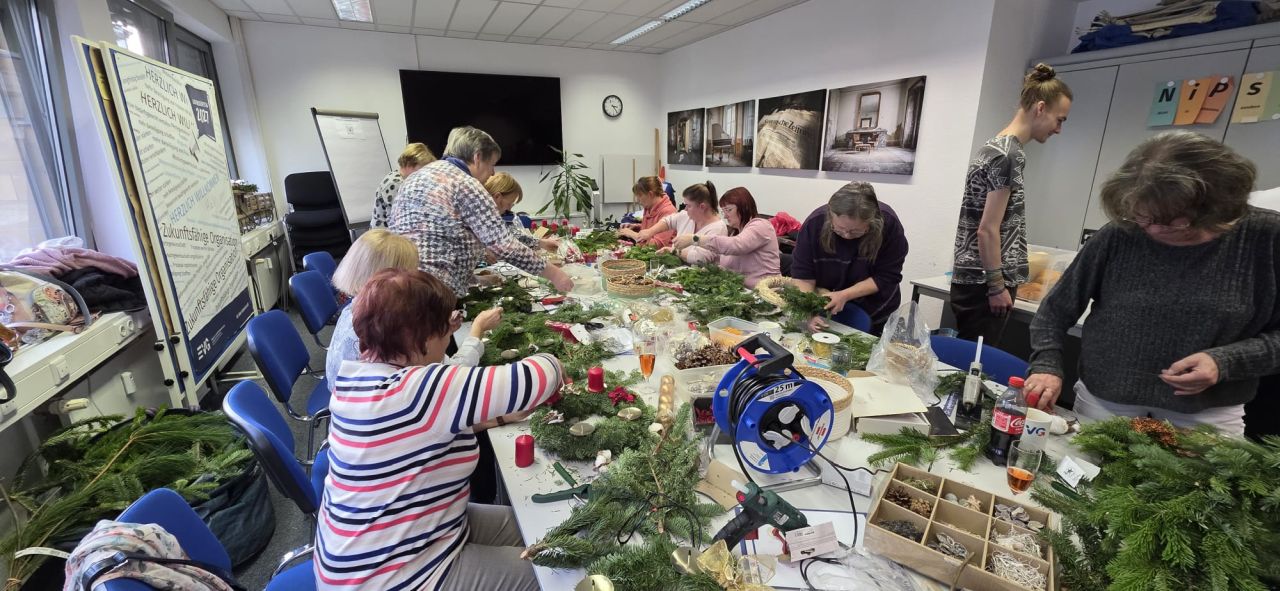 Mit Tannengrün bis unters Dach, funkelnden Deko-Elementen, warmem Tee und viel guter Laune wurde fleißig gestaltet und gewerkelt: