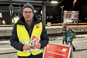 Mit einer Pendleraktion an mehreren Bahnhöfen hat die DGB Region Niederbayern am Dienstag auf die Bedeutung des Acht-Stunden-Tages aufmerksam gemacht.