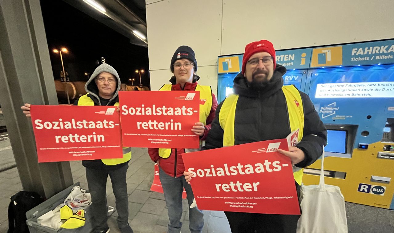 Mit einer Pendleraktion an mehreren Bahnhöfen hat die DGB Region Niederbayern am Dienstag auf die Bedeutung des Acht-Stunden-Tages aufmerksam gemacht.