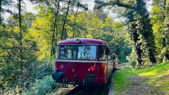 Bei schönstem Ausflugswetter begrüßte der Seniorenvorsitzende Johannes Houben die zahlreichen Teilnehmenden. Im nostalgischen roten Schienenbus, dem „roten Brummer“, startete das Strecken-Bahnerlebnis leicht verspätet vom Bahnhof Linz. Auf der rechten Rheinseite ging die Fahrt durch das Kasbachtal mit seinen urwüchsigen Wäldern, vorbei an steilen Hängen und schroffen Basaltsteinbrücken, zum Zielort Kalenborn.