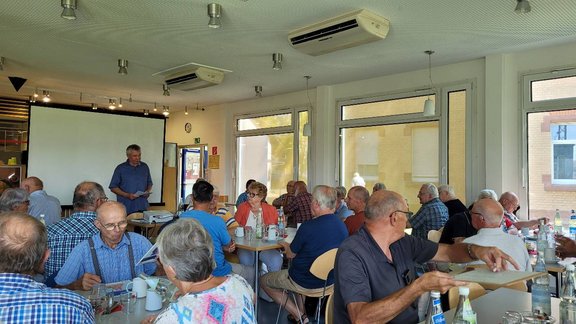 Seniorenleiter Huber begrüßte den Vertreter der Stiftungsfamilie BSW Uwe Seiser. Aufmerksam verfolgten die Teilnehmer die Leistungen der Stiftungsfamilie. In allen sozialen Belangen ist diese ein wertvoller Ansprechpartner. Auch einige kritische Nachfragen konnten zufriedenstellend gelöst werden. Die weitere Tagesordnung hat der Kollege Huber übernommen. Besonders der Stellenabbau bei der Bahn sorgte für Betroffenheit. Wie soll denn die Verkehrswende vollzogen werden wenn bei der Bahn das Angebot in vielen Bereichen zusammengestrichen wird? Immerhin ist das Verkehrsmittel Bahn die umwelfreundlichste Lösung für Massenverkehre. Gut ist, dass die EVG dies so nicht hinnehmen wird. Das weitere Jahresprogramm und der erste Entwurf des Programms für 2025 ist angekündigt worden. Dieses wird der Imtakt Ausgabe Dezember beigelegt für alle Mitglieder des OV Offenburg. Unter Verschiedenes kamen die drängenden Themen der KVB zur Sprache. Heftige Kritikt bekam die ungenügende Bezuschussung von Leistungen in der Physiotherapie und der neue Zuschuss zur Wahlleistung Unterkunft. Die Fragen zu allen Themen konnten behandelt werden.