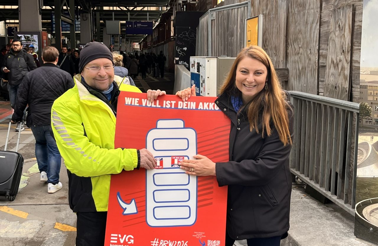 Mit einem bundesweiten Aktionstag „Energie 2026“ hat die EVG in dieser Woche ein starkes Signal gesetzt: Wir sind vor Ort, wir hören zu, wir kümmern uns - und wir starten jetzt gemeinsam in die Betriebsratswahl 2026.