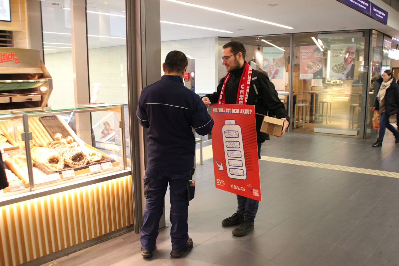 Im Rahmen des Aktionstages machten die Teams außerdem noch einmal auf den EVG-Mitgliederbonus aufmerksam. Die Botschaft kam gut an: Wer Mitglied ist, profitiert - und überlässt dem Arbeitgeber kein Geld, das den Beschäftigten zusteht.