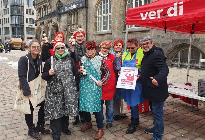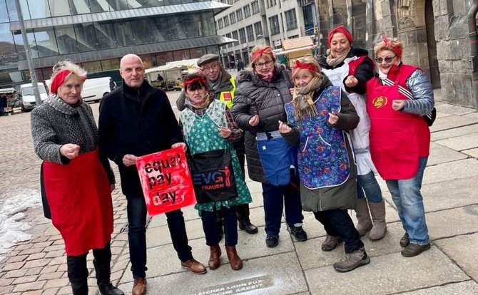 Wir klärten gern über die noch vorhandenen Lohnunterschiede auf. So verdient ein Mann ab dem 01. Januar eines jeden Jahres seinen vollen Lohn/Gehalt, doch die Frauen müssen 66 Tage warten, bis sie auf 100 % gleichem Lohn angekommen sind. Das darf es nicht mehr geben.