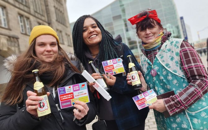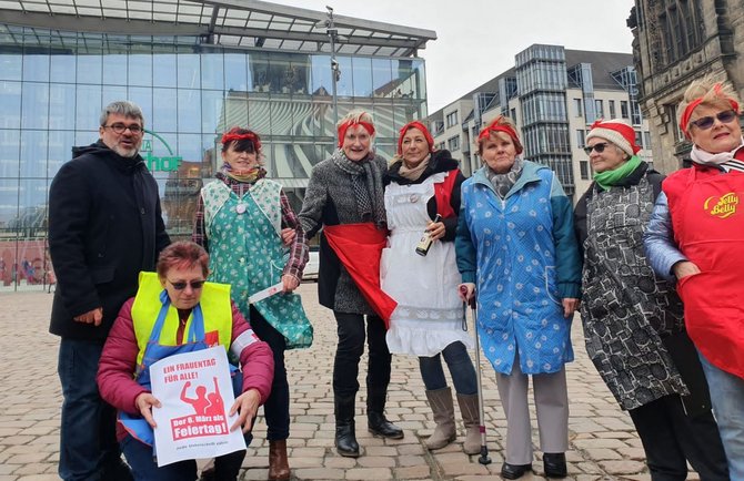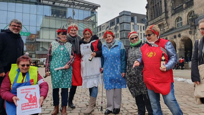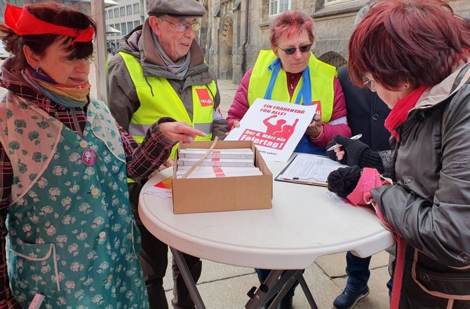 Gleichzeitig sammelten wir Unterschriften, damit in Sachsen der 08. März ebenfalls ein Feiertag wird. Dieser Unterschriftenaktion sind viele gern nachgekommen.