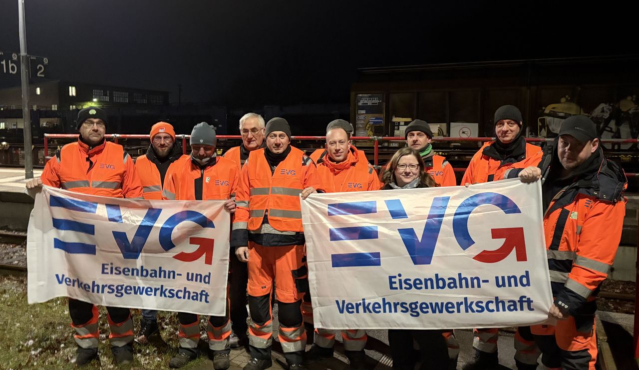 Der Warnstreik EVG bei Regio Infra Nord-Ost (RIN) wurde am Donnerstag erfolgreich durchgeführt. Zahlreiche Kolleginnen und Kollegen haben die Arbeit zwischen 7 Uhr und 9:30 Uhr niedergelegt und für bessere Arbeitsbedingungen gestreikt.