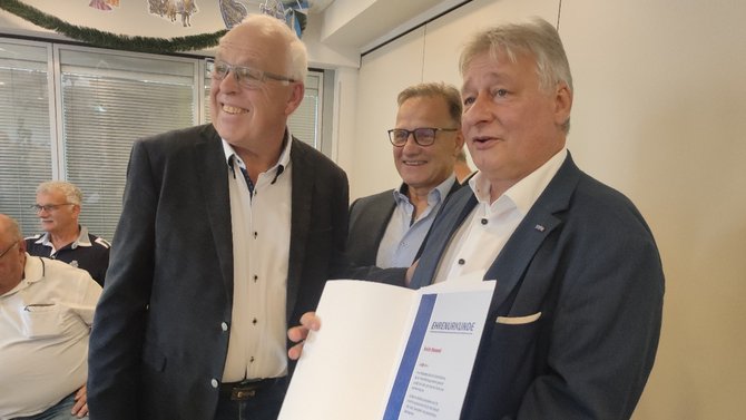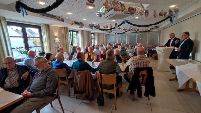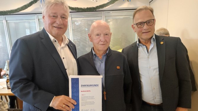 Martin Burkert dankte für die Einladung und gratulierte in erster Hinsicht den Jubilaren, insbesondere den Beiden, die für 75 Jahre Mitgliedschaft geehrt werden, aber leider nicht persönlich anwesend sein konnten. Als langjährigster Jubilar mit 70 Jahren Gewerkschaftszugehörigkeit konnte Helmut Gabriel persönlich vor Ort geehrt werden.