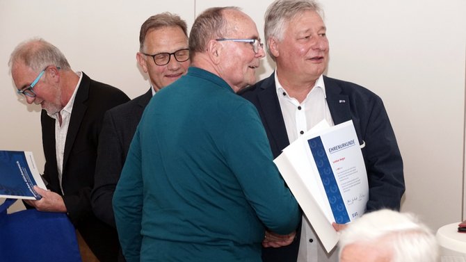 Schließlich richtete er seinen Dank und Anerkennung an die Jubilare und nannte beispielhaft die Kollegen Manfred Förster und Bertolt Wölfe für 65 Mitgliedschaft und Peter Knacker als ehem. ehrenamtliches Mitglied im Ortsverband für 50 Jahre. Auch er gratulierte mit besonderer Erwähnung dem Helmut Gabriel für 70 Jahre treue Mitgliedschaft.
