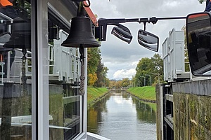 Die Fahrt führte saaleabwärts durch die Schleuse Halle-Trotha. Ein besonderer Blick galt dem Hafen in Halle-Trotha, der heute nicht mehr vom Schiffsverkehr geprägt ist. Aufgrund zu geringer Wassertiefen auf der Saale und des fehlenden Ausbaus der Elbe ist ein wirtschaftlicher Schiffsumschlag nicht möglich. Der Hafenbetrieb wurde daher auf den kombinierten Verkehr zwischen Schiene und Straße umgestellt und wird heute als Containerterminal weitergeführt.