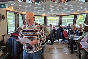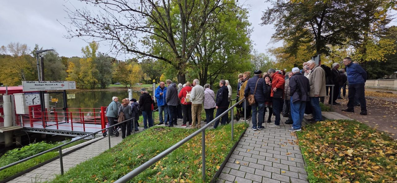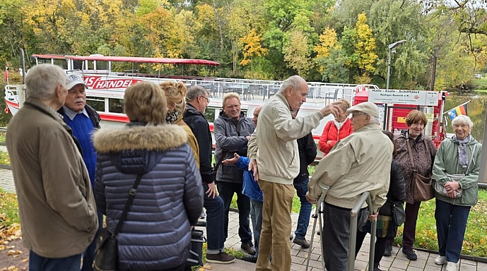 Nach der Begrüßung durch Erich Dressler, Vorsitzender der Ortsseniorenleitung Halle, hieß es am Riveufer in Halle: „Leinen los!“ - und die Fahrt mit der MS Händel II begann.