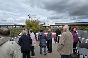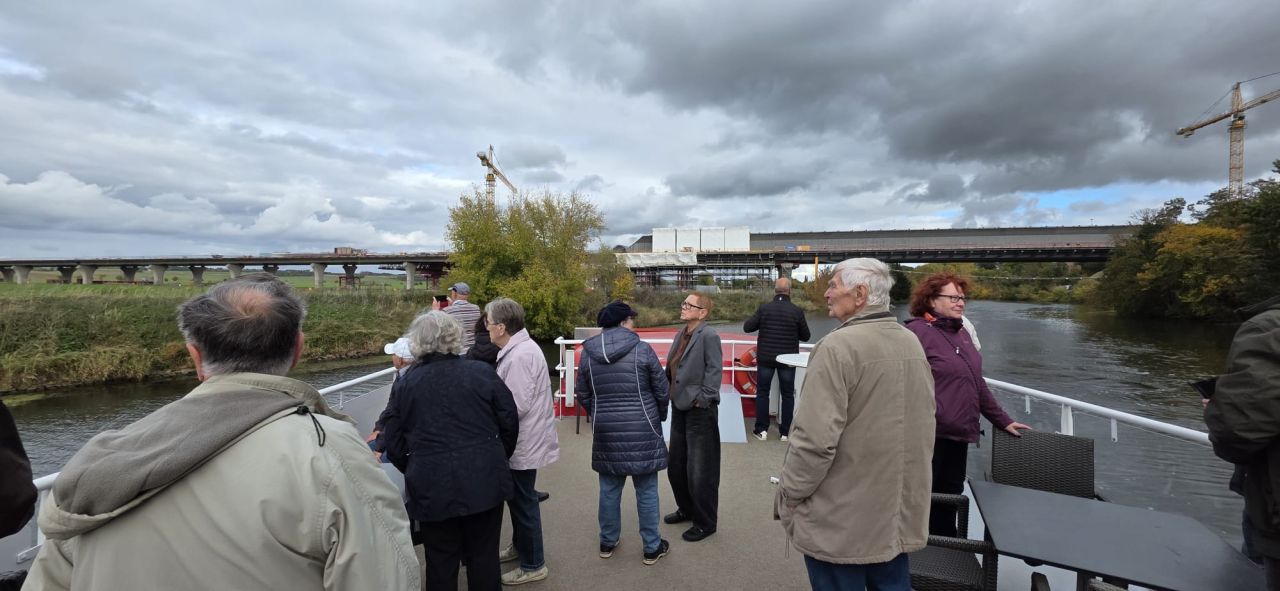 Ein Höhepunkt der Fahrt war die Strecke entlang der Brachwitzer Alpen bis zur Großbaustelle der Autobahn A143. Besonders beeindruckend war die Durchfahrt unter der entstehenden Saalebrücke – einem Mammutprojekt für die Verkehrsinfrastruktur der Region. Aus unmittelbarer Nähe bekamen die Teilnehmenden seltene Einblicke in das Bauvorhaben, das große Aufmerksamkeit und viele Gesprächsanlässe bot.