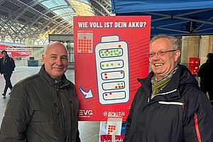 Am 10. Dezember fand erneut der EVG-Tag am Leipziger Hauptbahnhof statt. Am Infostand kam es zu zahlreichen lebhaften Gesprächen: Viele Kolleg:innen nutzten die Gelegenheit, Fragen zu stellen, Informationsmaterial mitzunehmen und sich über aktuelle gewerkschaftliche Themen auszutauschen.
