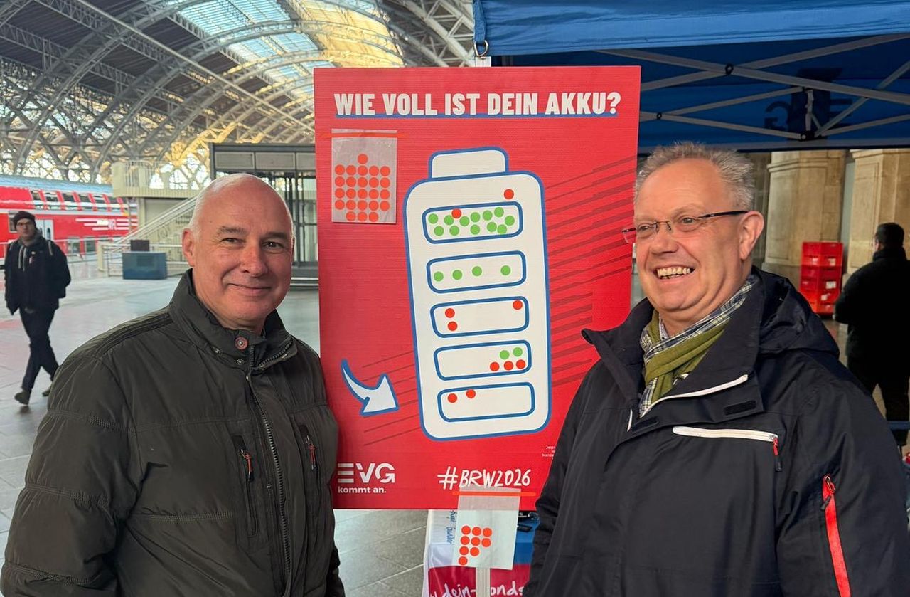 Am 10. Dezember fand erneut der EVG-Tag am Leipziger Hauptbahnhof statt. Am Infostand kam es zu zahlreichen lebhaften Gesprächen: Viele Kolleg:innen nutzten die Gelegenheit, Fragen zu stellen, Informationsmaterial mitzunehmen und sich über aktuelle gewerkschaftliche Themen auszutauschen.