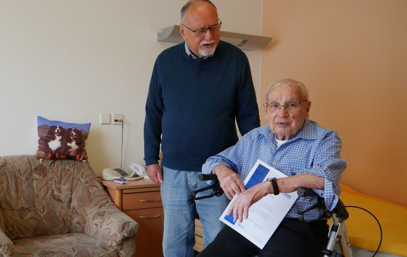 Seit 75 Jahren ist er Mitglied in der Gewerkschaft und wird in diesem Jahr 98 Lebensjahre erreichen. Zu diesem außergewöhnlichen Lebenspunkt haben die Vorsitzenden der EVG-Aalen den Kollegen Ferdinand Manz im Pflegeheim besucht.