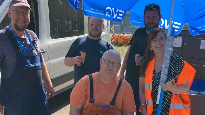 Neben der willkommenen Abkühlung nutzten wir die Gelegenheit, die Kolleg:innen über aktuelle Entwicklungen zu informieren, insbesondere in Bezug auf den Fonds soziale Sicherung (FsS). Eine besonders erfreuliche Nachricht war die Verlängerung der Antragsfrist für die tarifliche Leistung „156 Euro Erholungsbeihilfe“. Diese Frist, die ursprünglich am 31. August 2024 enden sollte, wurde nun bis zum 30. November 2024 verlängert. Damit erhalten auch jene Kolleg:innen , die es bisher noch nicht geschafft haben, die Möglichkeit, diese Leistung in Anspruch zu nehmen.