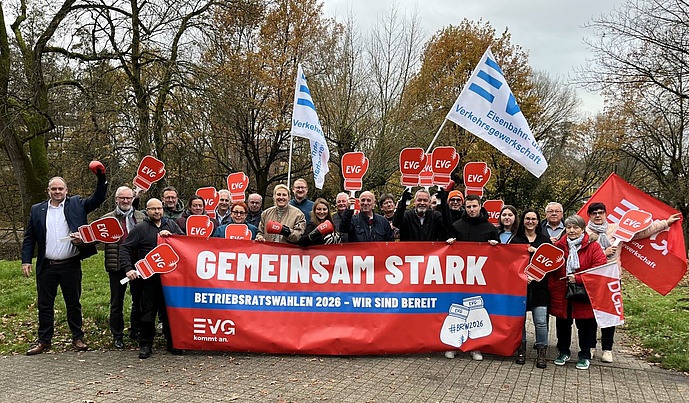 Die Aktion verdeutlicht die Entschlossenheit der EVG in Baden-Württemberg, die Interessen der Beschäftigten auch in den kommenden Jahren aktiv und zuverlässig zu vertreten. Mit Banner, Fahnen und EVG-Signets machten die Teilnehmenden ihre Unterstützung für eine starke Arbeitnehmervertretung sichtbar.