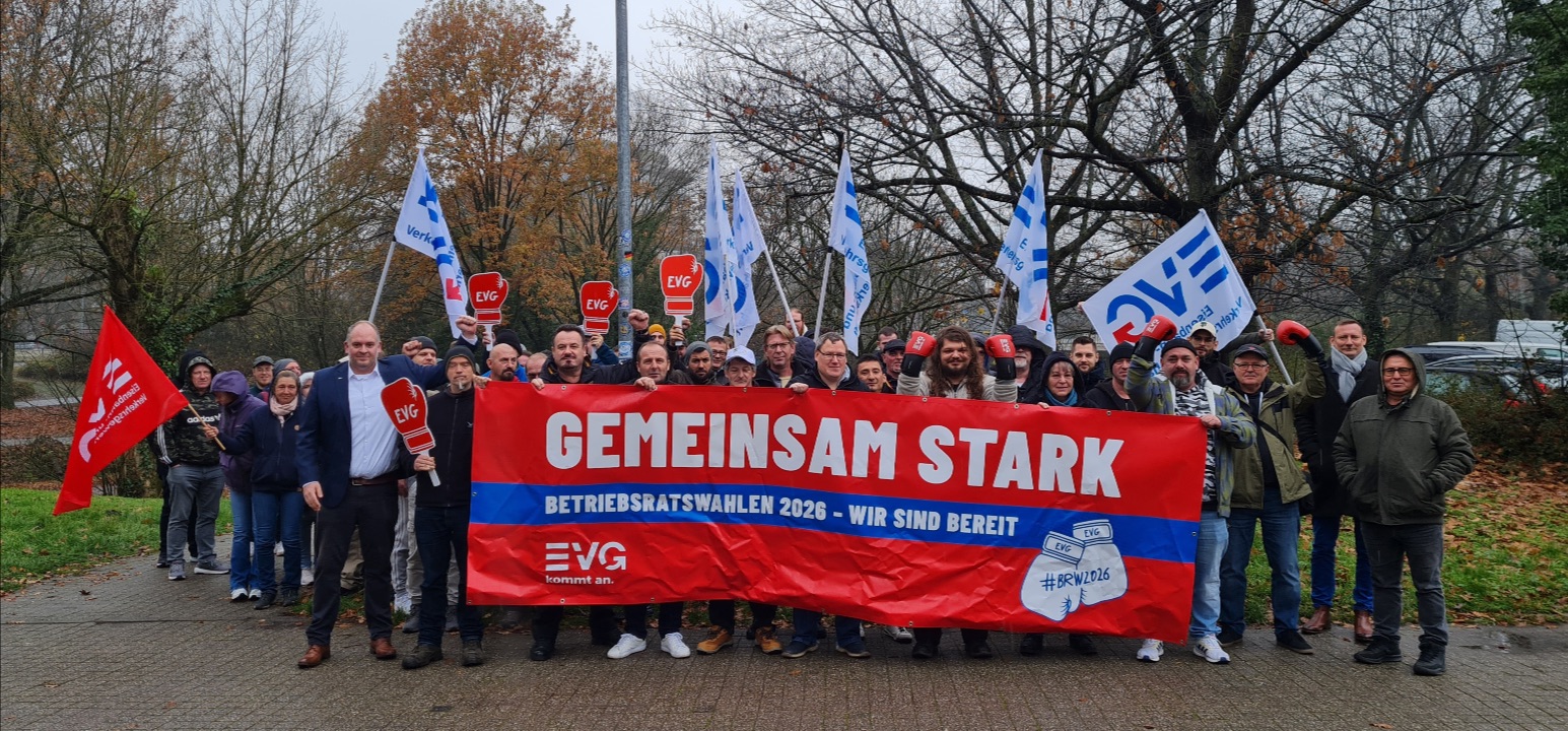 Der starke Auftritt während der Versammlung zeigte klar, wie wichtig Mitbestimmung und Zusammenhalt den Karlsruher Fahrwegdiensten sind – und dass die Belegschaft geschlossen hinter ihrem Betriebsrat steht. Das große Banner mit der Aufschrift „Gemeinsam stark – Betriebsratswahlen 2026 – Wir sind bereit“ unterstreicht die Botschaft des Tages: Zusammenhalt und Mitbestimmung bleiben zentrale Eckpfeiler der Belegschaft.