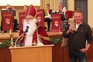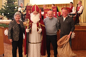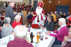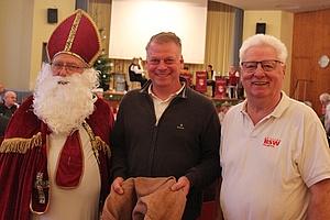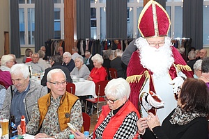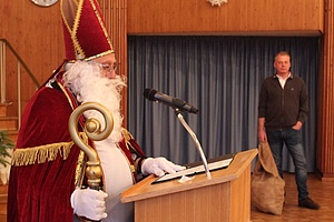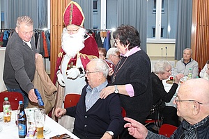 Als besondere Einlage trug der als "Nikolaus verkleidete Vorsitzende der EVG-Seniorenleitung", Harald Schmid, eine Weihnachtsgeschichte vor und verteilte an alle Veranstaltungsteilnehmer*innen zusammen mit Wolfram Lutz einen Schokoladennikolaus.