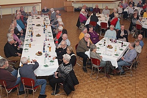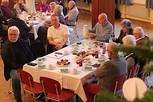 Der gemütliche Nachmittag im festlich dekorierten Saal bei Kaffee und Kuchen sowie belegten Brötchen wurde von "Querbeet" wie eine musikalische Zeitreise durch die Adventszeit in Richtung Hl. Abend unterhaltsam gestaltet. Musikerin Erika Kurfess und das Männerquartett stimmten die Besucher/-innen auf die Vorweihnachtszeit und die bevorstehenden Feiertage ein. Mit sehr abwechslungsreichen Melodien und Gedichten in fränkischer Mundart zogen sie die Veranstaltungsteilnehmer/-innen regelrecht in ihren Bann. Die Pausen wurden von ehemaligen Eisenbahnern und Familienangehörigen als Gelegenheit zur geselligen Unterhaltung genutzt. Je eine Stunde präsentierte Querbeet Vor-Weihnachtliches und Besinnliches aus ihrem reichhaltigen Repertoire und dann ging`s zünftig, fidel und lustig zu.