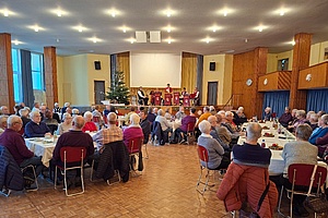Die Ortsstelle der Stiftungsfamilie BSW (Bahnsozialwerk) und die Ortsseniorenleitung der EVG (Eisenbahn- und Verkehrsgewerkschaft) Würzburg hatten wieder gemeinsam zur Weihnachtsfeier in den Festsaal vom Kreuzkloster in Gemünden eingeladen.