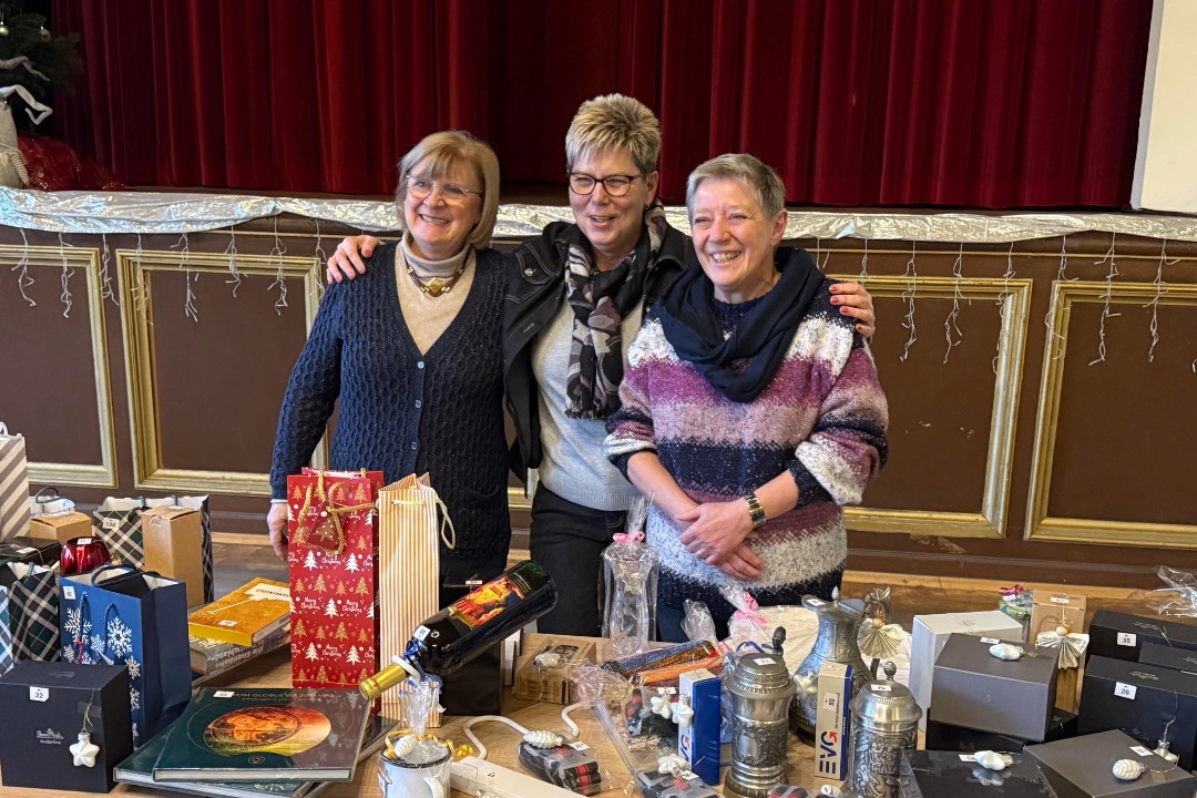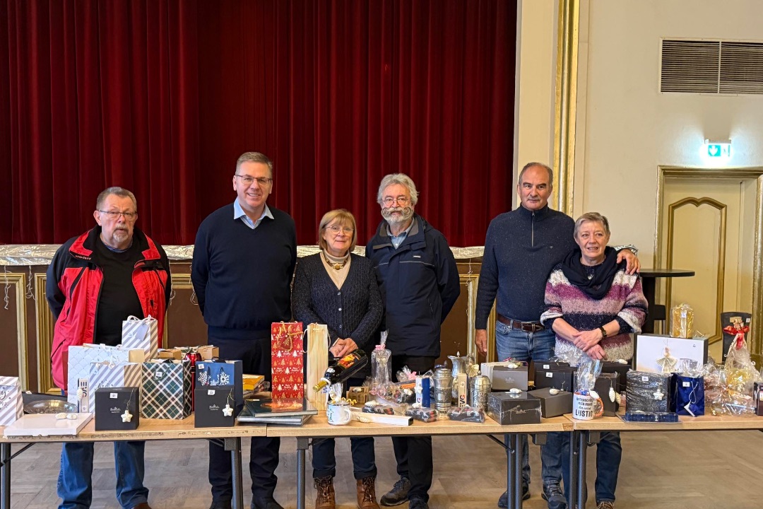 Ein besonderes Highlight war in diesem Jahr die Tombola, die erstmals durchgeführt wurde. Die Idee dazu hatte Hans Roth, der damit für große Freude sorgte. Marion Roth und Beate Fleischmann übernahmen liebevoll das Verpacken der rund 130 von den Seniorinnen und Senioren gespendeten Geschenke. Marion Roth, Hildegard Fein, Gaby Jahnel und Beate Fleischmann kümmerten sich um den Verkauf der Lose. Die Auslosung übernahm schließlich der Weihnachtsmann, der mit viel Charme und Humor die Preise verteilte. Vielen Dank an Heinz Meiler, der diese Rolle mit Bravour ausfüllte.