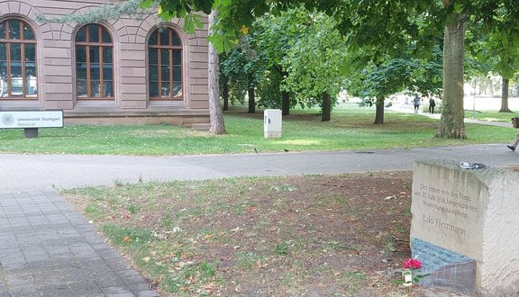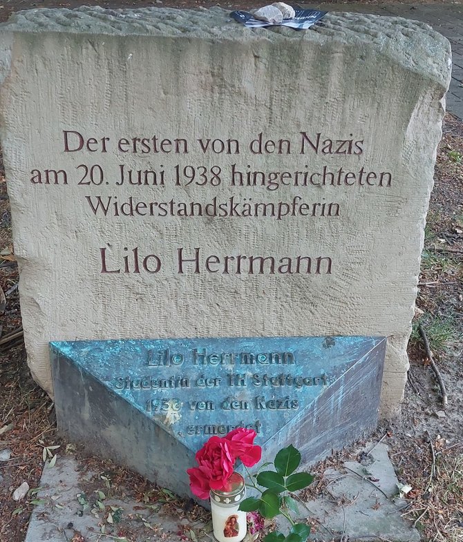In stillem Gedenken erinnern wir EVG-Frauen Stuttgart an Liselotte („Lilo“) Hermann im Uni-Park vor der TH in Stuttgart, wo 1988 ein Gedenkstein für sie errichtet wurde. In Stuttgart gibt es auch einen Stolperstein an ihrem ehemaligen Wohnort in der Hölderlinstraße.