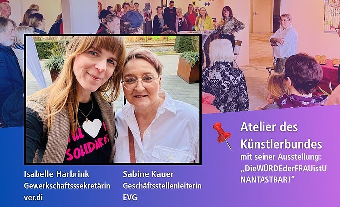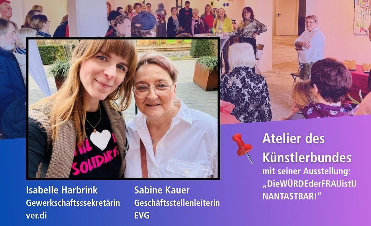 Mit einer eindrucksvollen und gut besuchten Ausstellung haben die Frauen der EVG Hamm in Kooperation mit dem Hammer Künstler Bund (hkb) anlässlich des Internationalen Frauentages ein starkes Zeichen gesetzt unter dem Titel „Die Würde der Frau ist unantastbar“.