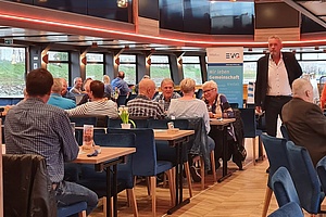 Zu Beginn begrüßte der Ortsvorstand der EVG Karlsruhe die Gäste - und damit insbesondere die Jubilarinnen und Jubilare, die der Gewerkschaft seit 25, 40, 50 oder gar 60 Jahren angehören. Der Saal war von einer Mischung aus Anerkennung, Stolz und kameradschaftlicher Wärme erfüllt. Gespräche und Erinnerungen standen im Mittelpunkt, begleitet von der beliebten Schiffsrundfahrt - der perfekte Weg, den Rhein entspannt zu erleben.