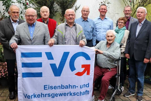 Ein Höhepunkt der Versammlung war die Ehrungen langjähriger Mitglieder für ihre Treue und Verbundenheit mit der Gewerkschaft. So wurden beispielsweise (von links nach rechts im Bild) Helmut Mies (für 60 Jahre), Egon Tönges (für 50 Jahre), Horst Dietmar Pieler (für 70 Jahre), Manfred Kalb (für 50 Jahre), Wilfried Jungblut (für 60 Jahre) sowie Rudolf Elberskirch (sitzend - für 70 Jahre) ausgezeichnet.