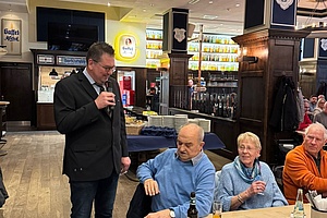 Am vergangenen Sonntag begrüßte der Vorsitzende des Ortsverbandes Köln, Kalli Wenzel, in der „Guten Stube“ des Gaffel am Dom die Jubilare mit ihren Partner:innen zur Jubilarehrung. Zu den Feierlichkeiten waren 213 Jubilare eingeladen, die auf 25, 40, 50, 60, 65, 70 und 75 Jahre Mitgliedschaft in der Gewerkschaft zurückblicken können.