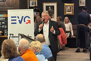 Zusätzlich wurde der Kollege Christian Erbstößer, der aus gesundheitlichen Gründen nicht teilnehmen konnte, für sein 80-jähriges Jubiläum gewürdigt. Das steht exemplarisch für langjährige Treue und Verbundenheit mit der EVG. Die feierliche Laudatio hielt der EVG-Vorsitzende Martin Burkert, der neben dem Dank an die treue Gewerkschaftszugehörigkeit auch auf die aktuelle Bahnpolitik einging.