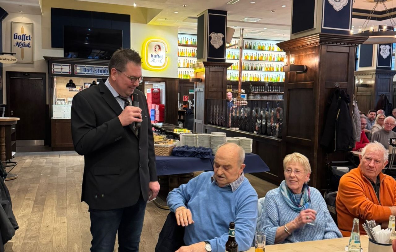 Am vergangenen Sonntag begrüßte der Vorsitzende des Ortsverbandes Köln, Kalli Wenzel, in der „Guten Stube“ des Gaffel am Dom die Jubilare mit ihren Partner:innen zur Jubilarehrung. Zu den Feierlichkeiten waren 213 Jubilare eingeladen, die auf 25, 40, 50, 60, 65, 70 und 75 Jahre Mitgliedschaft in der Gewerkschaft zurückblicken können.