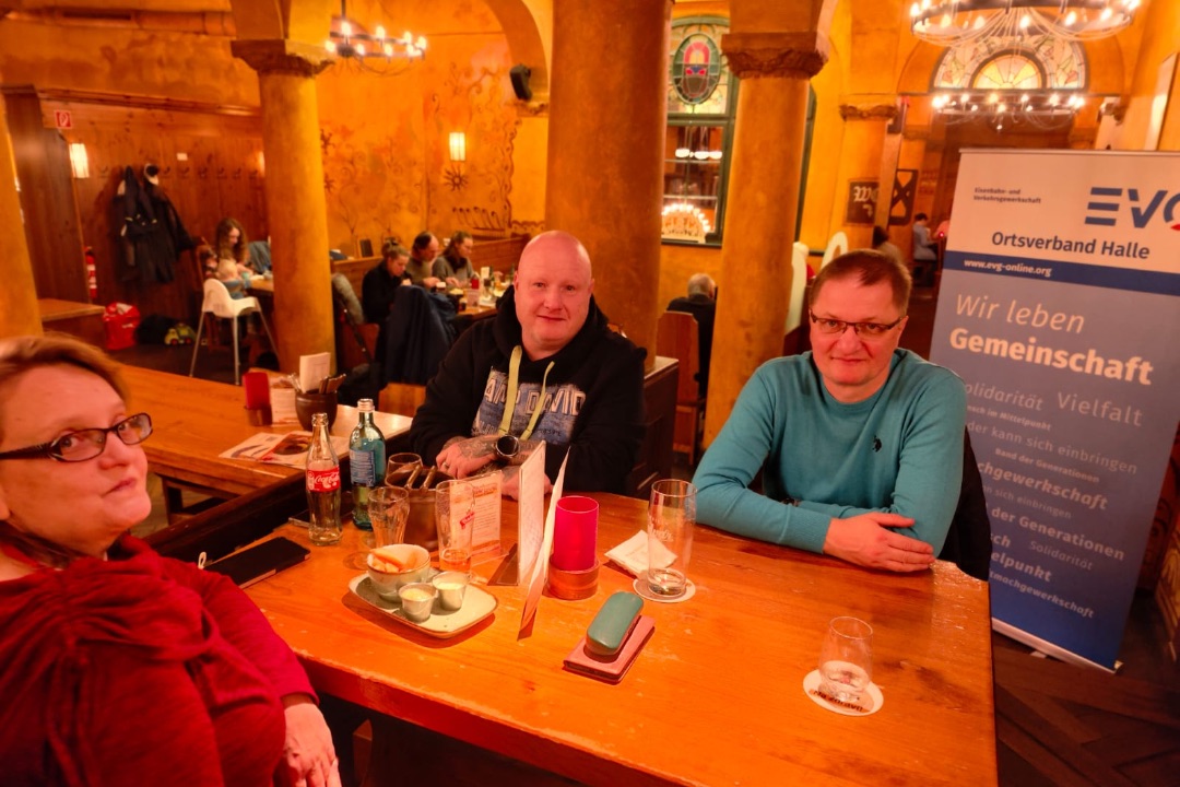 Erika Legandt, die mit 75 Jahren ein ebenso bemerkenswertes Jubiläum feiert. Sie war in früheren Jahren im Hauptvorstand der damaligen GdED aktiv und hat die gewerkschaftliche Arbeit in Halle mitgestaltet und geprägt. Auch wenn sie nicht vor Ort sein konnte, wurde ihr Engagement besonders hervorgehoben.