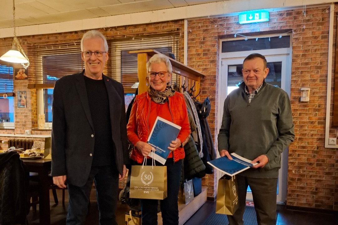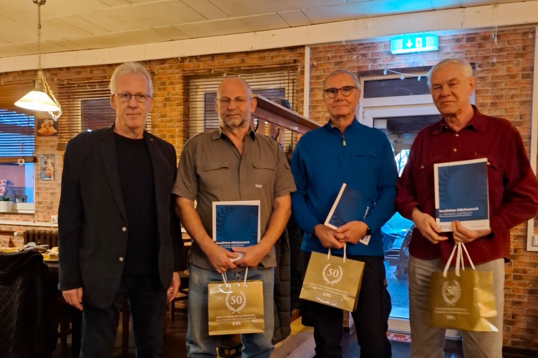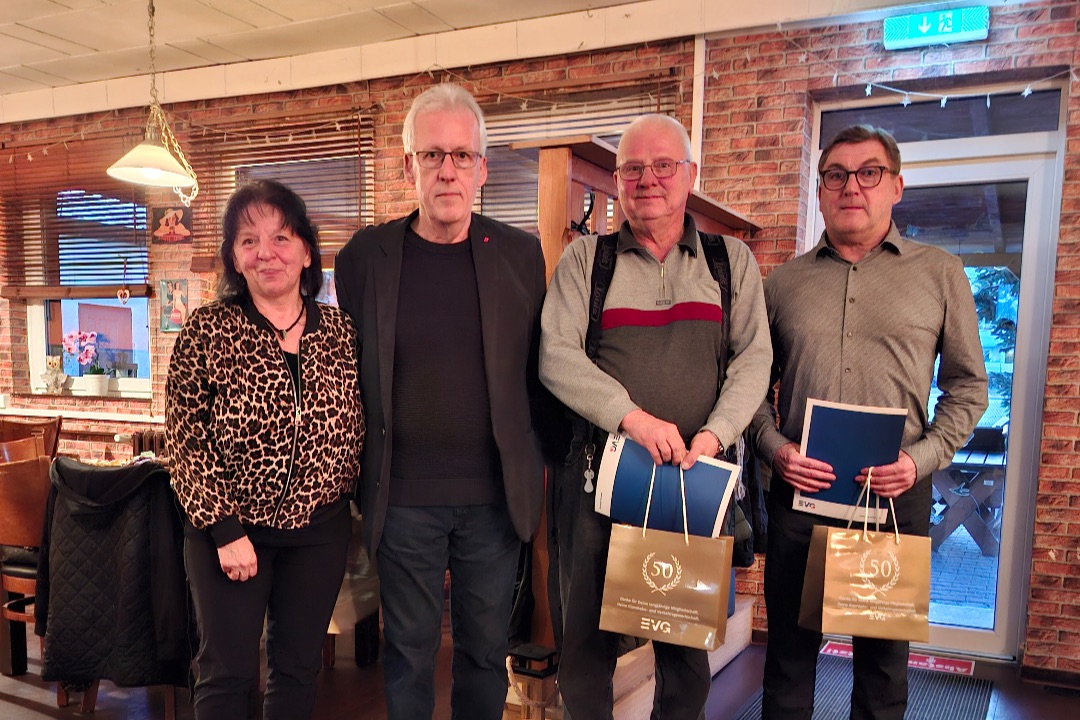 Anschließend ehrte der Vorstand des Ortsverbandes die anwesenden Jubilarinnen und Jubilare persönlich, wertschätzend und mit großem Respekt für viele Jahre des Engagements. Beim warmen Essen im Anschluss blieb viel Raum für Gespräche und Erinnerungen an „die gute alte Bahn“.