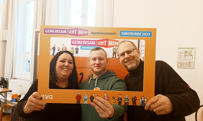 „Zahlreiche Aktionen sind oder werden geplant“, betont Berlins EVG-Chef Michael Bartl und Vize-Vorsitzende Susanne Kielkowski. Dazu gehört auch, dass wir Reisende über die Forderungen bei Aktionen im Vorfeld informieren.