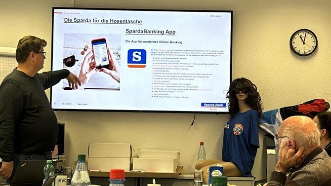 Schritt für Schritt erklärten die Referent:innen auch, wie man einen Account fürs Online-Banking erstellt und die passenden Apps herunterlädt. Für alle gab es hilfreiches Infomaterial und die Empfehlung, sich bei Unsicherheiten direkt in der Bank beraten zu lassen.