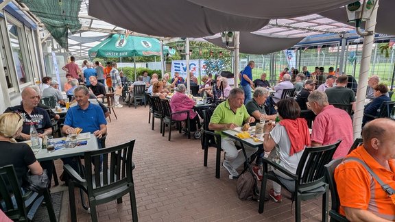 Am Montag, den 14.07.2025 hatte der Fonds für Soziale Sicherung, die Mitglieder des EVG Ortsverbandes Rhein-Neckar zu Feier seines 20. Geburtstages eingeladen. Der Ortsverbandsvorsitzende David Zein und die für den Bereich Südwest zuständige Mitarbeiterin des Fonds, Birgit Mehnert, konnten über 150 Kolleginnen und Kollegen auf dem Gelände der Gaststätte des Eisenbahner Sportvereins (ESV) in Ludwigshafen/Rhein begrüßen. Das Organisationsteam des Ortsverbandes hatte die Vorbereitungen und die Betreuung der Veranstaltung übernommen. Für das leibliche Wohl, mit kühlen Getränken und Spezialitäten vom Grill, sorgte das ESV-Gaststättenteam.