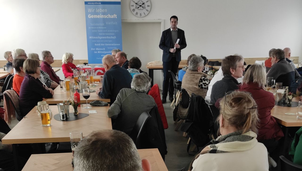 Am Donnerstag hatte der EVG-Ortsverband Fürth zum 1. Seniorentag 2026 eingeladen. Er wurde gleichzeitig als Neujahrsempfang gestaltet. 64 Seniorinnen und Senioren folgten der Einladung und erlebten einen informativen und geselligen Tag.