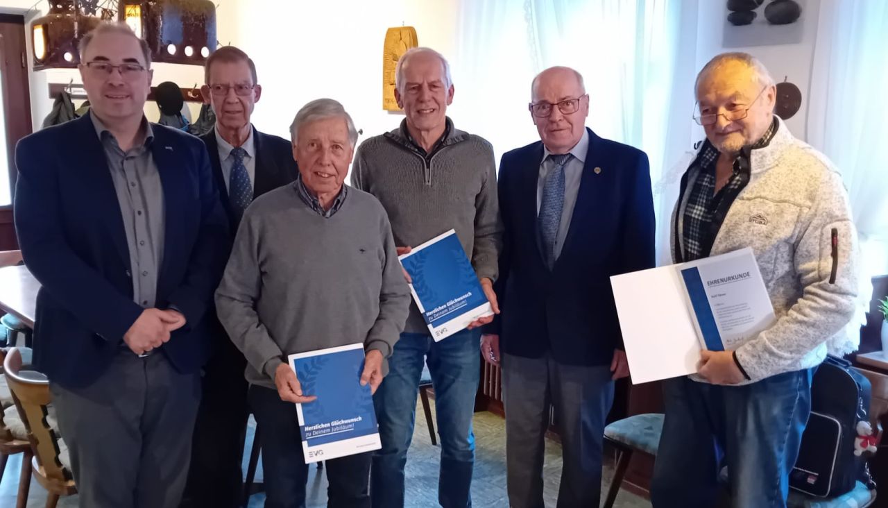 Anschließend führte Ingo Kratz zusammen mit Richard Seiert die Ehrung der Mitglieder durch. Rolf Ebner und Michael Ziegler waren anwesend und wurden für 50 Jahre Mitgliedschaft geehrt. Dazu konnte noch das OV-Mitglied Hans Herzog für 60 Jahre Mitgliedschaft geehrt werden.