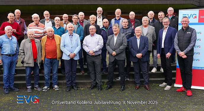 Im November begrüßte der 1. Vorsitzende des OV Koblenz, Michale Zapp, die Jubilare für das Jahr 2025 im kath. Pfarrzentrum „St. Martin“, in Oberlahnstein. Die Laudatio für 64 zu ehrende Mitglieder hielt der Gewerkschaftssekretär der Geschäftsstelle Mainz, Rüdiger Beck.