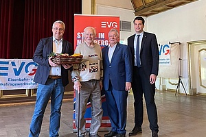 Ortsverbandsvorsitzender Ingbert Hautsch begrüßte die Gäste, überreichte die Jubiläumsgeschenke und bedankte sich für die langjährige Treue. Geschäftsstellenleiter Matthias Birkmann hob hervor, dass die EVG-Geschäftsstelle Nürnberg stets ein verlässlicher Ansprechpartner für alle Mitglieder sei.